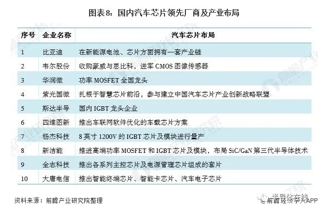整體來看,汽車芯片產(chǎn)業(yè)鏈的重點企業(yè)基本為國外企業(yè),國內(nèi)的領(lǐng)先企業(yè)數(shù)量很少。