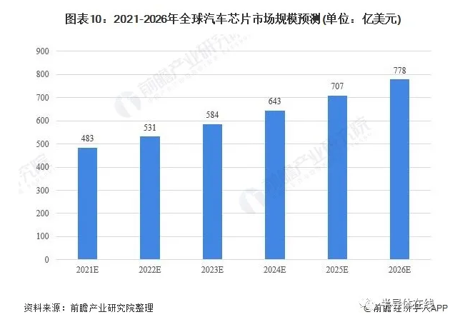 除此之外,車聯(lián)網(wǎng)、自動駕駛以及智能汽車的出現(xiàn)將會使得每輛車的芯片搭載量迅速上升。因此,預(yù)測到2026年全球汽車芯片市場規(guī)模將增長到778億美元。