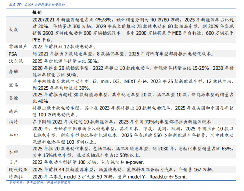 新能源汽車開啟十年黃金成長階段。Canalys 預(yù)計 2021 年,電動汽車將占全球新車銷量 的 7%以上,進(jìn)一步增長 66%,銷量將超過 500 萬輛;2028 年,電動汽車的銷量將增加到3000 萬輛;到 2030 年,電動汽車將占全球乘用車總銷量的近一半。根據(jù) IDC,中國新能源汽車市場在政策驅(qū)動下,將在未來5 年迎來強勁增長,2020 至 2025 年的年均 復(fù)合增長率(CAGR)將達(dá)到 36.1%,到 2025 年新能源汽車銷量將達(dá)到約 542 萬輛。其中純電動汽車占比將由2020 年的 80.3%提升至 2025 年的 90.9%。