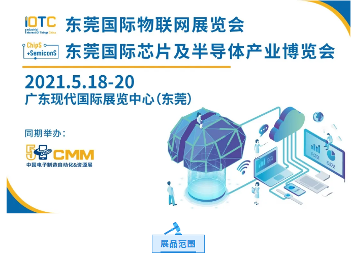 2021年5月18-20日,東莞國(guó)際物聯(lián)網(wǎng)展覽會(huì)IIOTC、東莞國(guó)際芯片及半導(dǎo)體產(chǎn)業(yè)博覽會(huì)ChipS+SemiconS將會(huì)與CMM電子制造自動(dòng)化&資源展/工業(yè)自動(dòng)化&工業(yè)裝配與傳輸技術(shù)展同期同地舉辦。