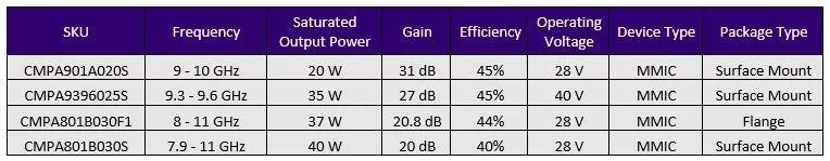 豐富的X-波段產(chǎn)品組合提供支持多級(jí)增益的解決方案,從而減少發(fā)射鏈路中所需要的器件數(shù)量。它們包括了不同的功率等級(jí)以優(yōu)化系統(tǒng)性能,并提供多種平臺(tái)以優(yōu)化系統(tǒng)架構(gòu)。瀏覽表1,了解更多產(chǎn)品細(xì)節(jié)和性能數(shù)據(jù)。