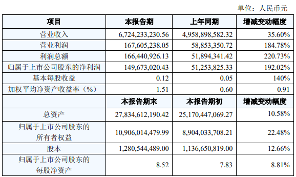 4月16日,國(guó)軒高科發(fā)布2020年度業(yè)績(jī)快報(bào),報(bào)告期內(nèi),公司實(shí)現(xiàn)營(yíng)業(yè)收入 672,423.32萬(wàn)元,同比上升35.60%;實(shí)現(xiàn)營(yíng)業(yè)利潤(rùn)16,760.52萬(wàn)元,同比上升 184.78%;實(shí)現(xiàn)利潤(rùn)總額16,644.09萬(wàn)元,同比上升220.73%;實(shí)現(xiàn)歸屬于上市公司股東的凈利潤(rùn)14,967.30萬(wàn)元,同比上升192.02%。報(bào)告期內(nèi),公司營(yíng)業(yè)收入、營(yíng)業(yè)利潤(rùn)、利潤(rùn)總額、歸屬于上市公司股 東的凈利潤(rùn)、基本每股收益較上年同比增幅達(dá)30%以上。