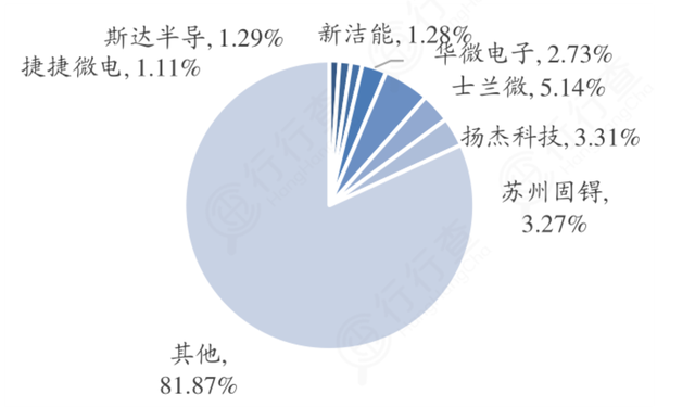 其次是中國臺灣,中國臺灣的廠商從代工向設(shè)計的方向發(fā)展,與歐美日仍然有差距,目前占據(jù)全球10%的市場份額。中國大陸以二極管、低壓MOSFET、晶閘管等低端功率半導(dǎo)體為主。