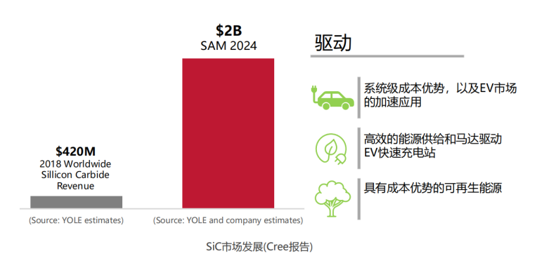 從應用上來看,特斯拉開始引入SiC MOSEFT到主驅(qū)上并迅速量產(chǎn),并被市場廣泛接受;國產(chǎn)新能源車開始引入SiCMOSFET 到主驅(qū)上,反應良好; SiC襯底開始降價;SiC 市場從以二極管為主逐漸過渡到以MOSFET為主(國際市場)……