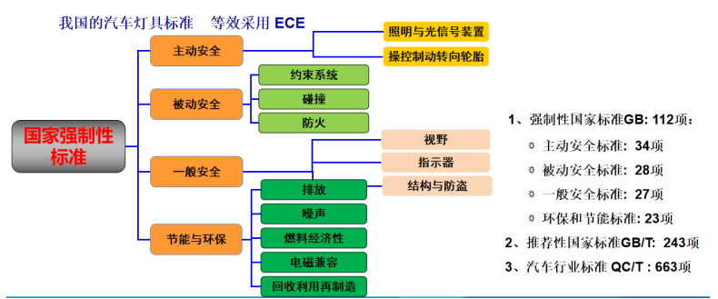從汽車燈具標準體系來看,國際汽車燈具標準體系包括歐洲經(jīng)濟委員會標準(ECE)、美國機動車工程師協(xié)會標準(SAE)、日本工業(yè)標準(JIS)、車載電子零部件測試標準(AEC-Q)等。