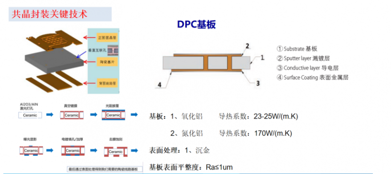 圍繞著車用LED封裝技術及趨勢,報告詳細分享了共晶封裝關鍵技術、金屬化共晶技術、微間距芯片陣列技術、熒光粉噴涂技術、白墻擋光技術、陶瓷熒光片技術、矩陣模組互聯(lián)技術等。