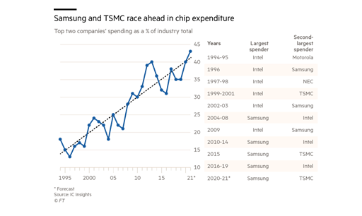 三星與臺(tái)積電的半導(dǎo)體支出榜首之爭