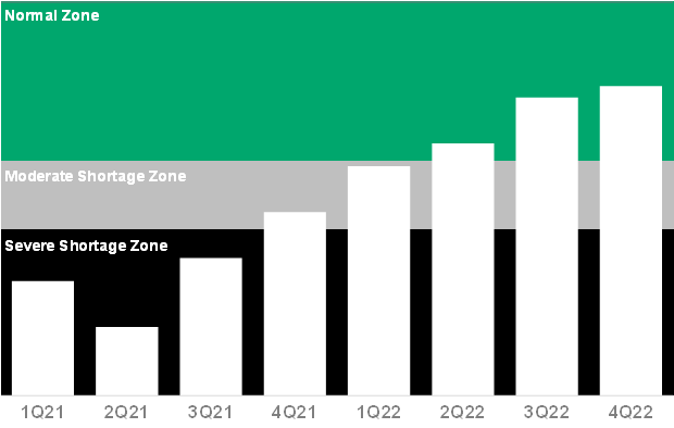 在大多數(shù)行業(yè)中,設(shè)備短缺預(yù)計(jì)將推遲到2022年第二季度,而基板容量限制可能會拖延到2022年第四季度。