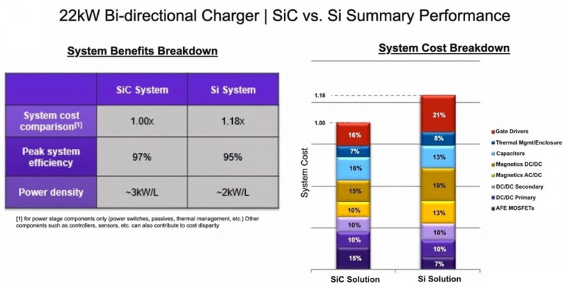 這些特性使得 1200 V SiC 器件比 Si 絕緣柵雙極型晶體管 (IGBT) 具備顯著的成本及性能優(yōu)勢 (圖2),提供了實(shí)現(xiàn) 800 V 至 900 V 電動(dòng)汽車架構(gòu)所需的更高效率、散熱管理和功率密度。這樣就不難理解為何 Yole Développement 預(yù)估充電樁采用的 SiC 將從目前約 1000 萬美元,成長到 2025 年將近 2.25 億美元的規(guī)模。