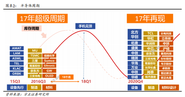 方正證券電子團(tuán)隊(duì)根據(jù)半導(dǎo)體的需求周期和供給周期,推演出“缺芯潮”下的半導(dǎo)體投資時(shí)鐘。