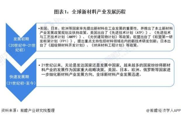 新材料作為基礎性和支柱性戰(zhàn)略產業(yè),是高新技術的先導。早在20世紀中,美國、日本、歐洲等國家率先提出新材料在工業(yè)發(fā)展的重要性,并推出了本土新材料產業(yè)發(fā)展政策規(guī)劃及扶持政策。
