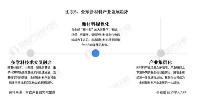 在趨勢上,隨著AI技術、大數(shù)據(jù)、超級計算機、量子計算等先進信息技術的迅速發(fā)展,及基礎學科的突破,全球新材料產業(yè)將呈現(xiàn)多學科技術交叉融合的發(fā)展趨勢。此外,在全球“碳中和”的大背景下,節(jié)能、環(huán)保、可循環(huán)、低碳等材料綠色化也已經(jīng)成為了共識,未來新材料也將呈現(xiàn)綠色化方向發(fā)展的態(tài)勢。