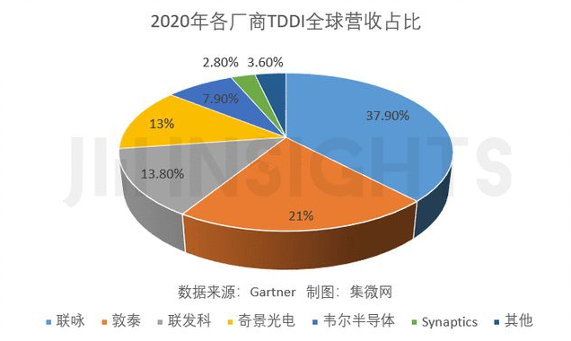 中國臺灣晶圓代工產(chǎn)業(yè)的繁榮帶動了驅(qū)動芯片設(shè)計(jì)產(chǎn)業(yè)的發(fā)展,使中國臺灣廠商占據(jù)全球液晶顯示驅(qū)動芯片市場的半壁江山。Gartner數(shù)據(jù)顯示,2020年中國臺灣TDDI設(shè)計(jì)廠商全球營收占比85.7%;2020年中國臺灣液晶顯示驅(qū)動芯片設(shè)計(jì)廠商全球營收占比56.5%。