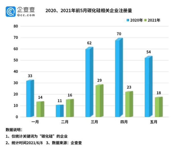 2020年共新增碳化硅相關(guān)企業(yè)486家,今年1-5月新增100家