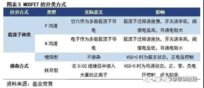 根據(jù)載流子種類與摻雜方式,MOSFET可以被分為4種類型:N溝道增強(qiáng)型、N溝道耗盡型、P溝道增強(qiáng)型、P溝道耗盡型。