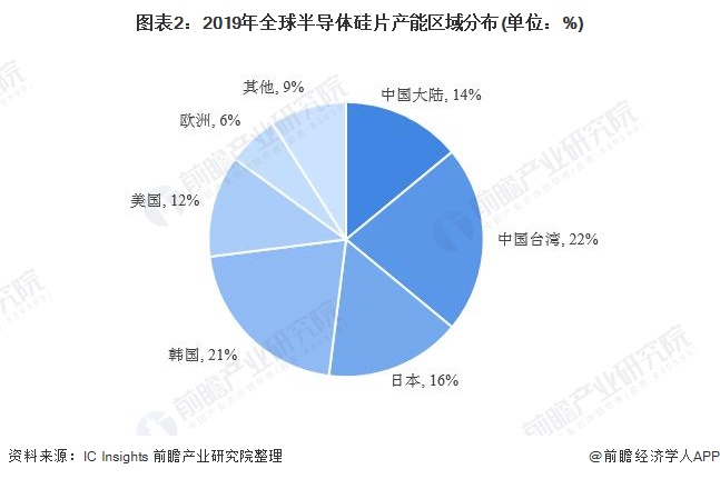 圖表2:2019年全球半導(dǎo)體硅片產(chǎn)能區(qū)域分布(單位:%)