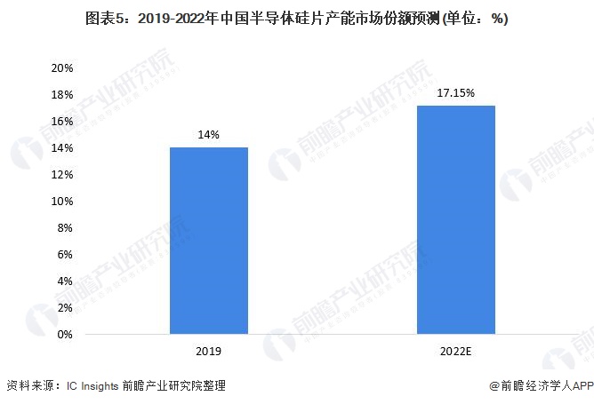 圖表5:2019-2022年中國半導(dǎo)體硅片產(chǎn)能市場份額預(yù)測(單位:%)
