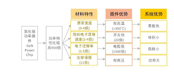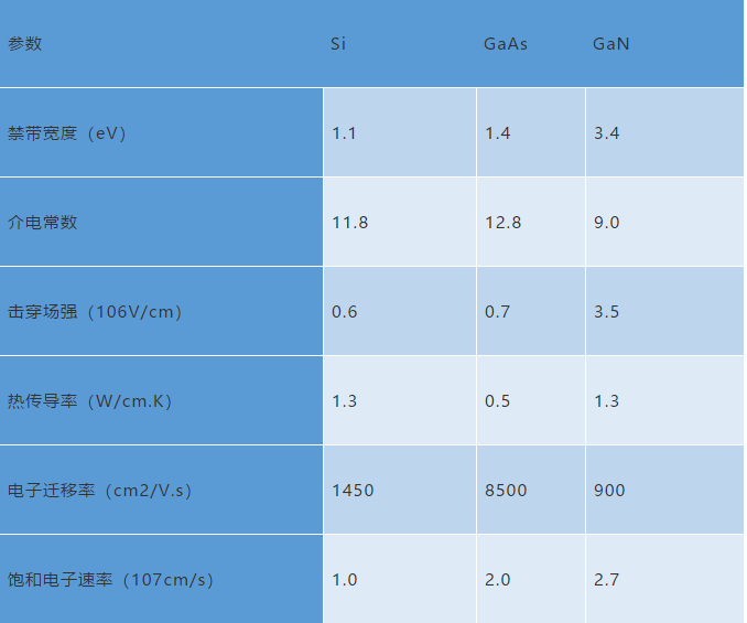 氮化鎵的帶隙為3.4eV,而現(xiàn)今最常用的半導(dǎo)體材料硅的帶隙為1.12eV,因此氮化鎵在高功率和高速元件中具有比硅元件更好的性能。