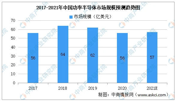目前國內(nèi)功率半導體產(chǎn)業(yè)鏈正在日趨完善,技術也正在取得突破。同時,中國也是全球最大的功率半導體消費國,2020年市場需求規(guī)模將達到56億美元,占全球需求比例約為39%。伴隨國內(nèi)功率半導體行業(yè)進口替代的發(fā)展趨勢,未來中國功率半導體行業(yè)將繼續(xù)保持增長,2021年市場規(guī)模有望達到57億美元。