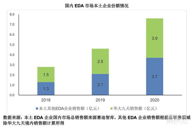根據(jù)招股書,2020年我國EDA行業(yè)迎來持續(xù)良好增長,全年行業(yè)總銷售額約為66.2億元,同比增長19.9%,實現(xiàn)連續(xù)增長。其中,我國自主EDA工具企業(yè)在本土市場營業(yè)收入約為7.6億元,同比增幅65.2%。