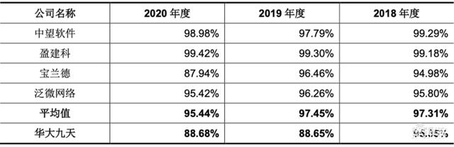 華大九天與可比上市公司主營業(yè)務(wù)毛利率的比較: