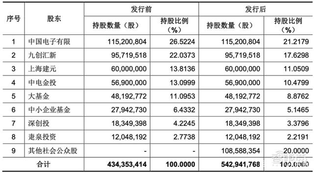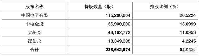 截至招股書簽署日,中國電子有限、中電金投、大基金和深創(chuàng)投四家股東為國有股份持有人,具體情況如下: