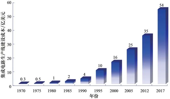 隨著集成電路工藝水平的不斷提高,自20世紀(jì)70年代至今,集成電路生產(chǎn)線建設(shè)的投資逐年增加。