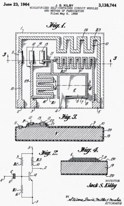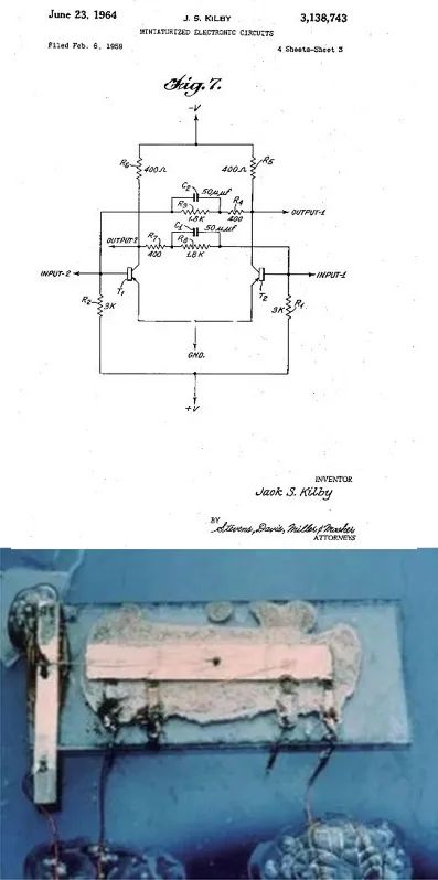 基爾比第1個(gè)集成電路專(zhuān)利和樣品