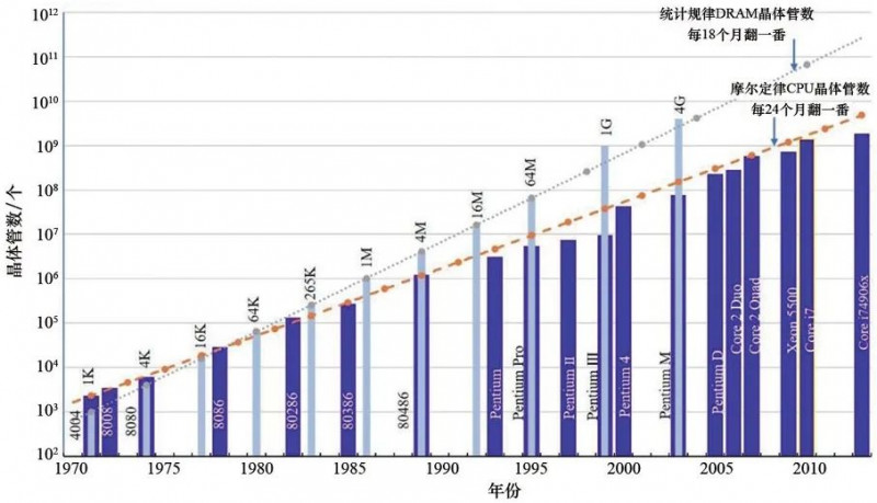 CPU和DRAM上晶體管數(shù)的增長(zhǎng) 根據(jù)公開(kāi)資料整理