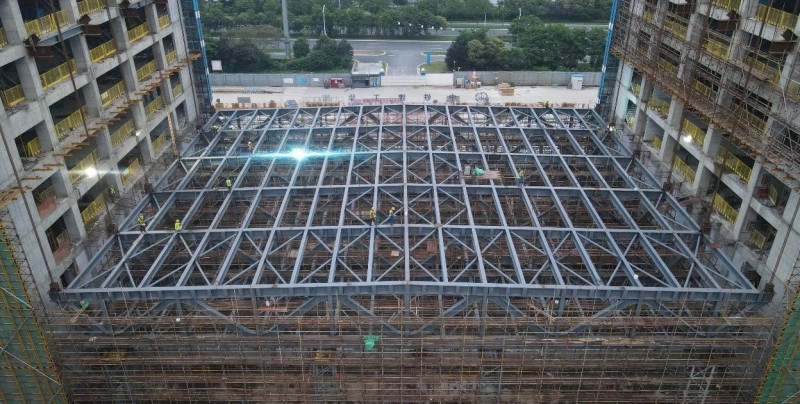 6月22日,國基南方射頻集成電路產(chǎn)業(yè)化項(xiàng)目迎來關(guān)鍵性節(jié)點(diǎn)!中試廠房屋面鋼結(jié)構(gòu)連廊順利完成整體提升。