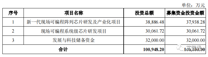 本次安路科技赴科創(chuàng)板IPO,計劃公開發(fā)行不超過 5,010萬股,且發(fā)行后總股本不低于 40,000 萬股,占發(fā)行后總股本比例 不超過 12.52%,擬募資10億元,主要用于新一代現(xiàn)場可編程系統(tǒng)陣列芯片研發(fā)及產(chǎn)業(yè)化項目、現(xiàn)場可編程系統(tǒng)級芯片研發(fā)項目以及發(fā)展與科技儲備資金。