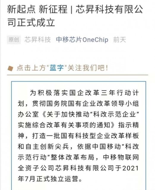 近日,中國移動旗下、中移物聯(lián)網(wǎng)全資子公司芯升科技有限公司正式獨立運行,進一步進軍物聯(lián)網(wǎng)芯片領(lǐng)域,并計劃科創(chuàng)板上市。