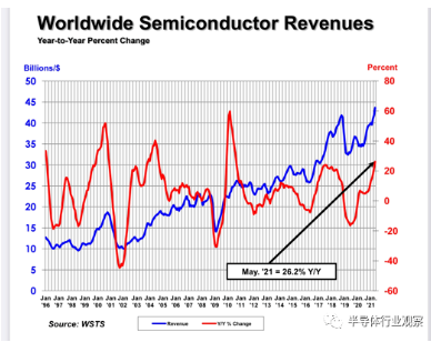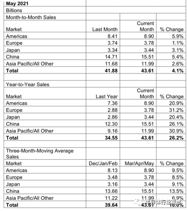 據(jù)美國半導體行業(yè)協(xié)會 (SIA) 今天宣布,2021 年 5 月,全球半導體行業(yè)銷售額為 436 億美元,比 2020 年 5 月的 346 億美元增長 26.2%,比 4 月份增長 4.1%。2021 年四月的銷售總額為 419 億美元。