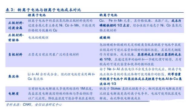 除此之外,在負極材料、集流體、電解質等方面,鈉離子電池也存在明顯的成本優(yōu)勢。