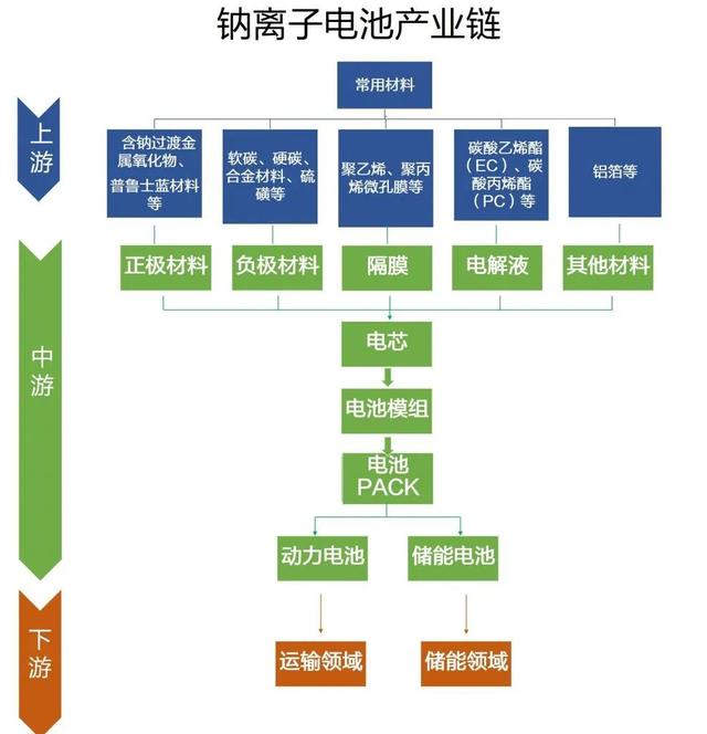 如果鈉離子電池真能實現(xiàn)廣泛應用,那么其產(chǎn)業(yè)鏈上游、中游企業(yè)將會受益。