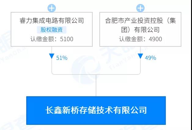 天眼查信息顯示,長(zhǎng)鑫新橋存儲(chǔ)技術(shù)有限公司成立于2021年1月5日,法定代表人趙綸,注冊(cè)資本1億元,其中睿力集成電路有限公司認(rèn)繳金額5100萬(wàn)元,持股51%,合肥市產(chǎn)業(yè)投資控股(集團(tuán))有限公司認(rèn)繳4900萬(wàn)元,持股49%。