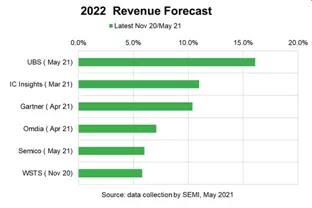 各大半導體分析機構對2022年全球半導體營收增長率的預測
