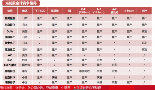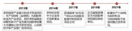 公開資料顯示,徐州博康具有自主完整的光刻膠產(chǎn)業(yè)鏈,已實現(xiàn)從單體材料、專用樹脂、光酸以及最終光刻膠產(chǎn)品的全品類國產(chǎn)化。與其他半導體光刻膠廠商相比,徐州博康的顯著特色是光刻膠單體材料全部自供,光刻膠單體是光刻膠實現(xiàn)光刻膠功能最核心的原材料,是卡脖子材料中的卡脖子材料,徐州博康是中國目前唯一可以規(guī)?;a(chǎn)中高端光刻膠單體材料的企業(yè),2017年起,開始承擔國家863項目的國際02項目中的《193納米光刻膠的開發(fā)與產(chǎn)業(yè)化》,并于2019年正式被國家確定為光刻膠單體的國標制定單位。