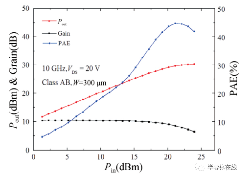 圖9 10GHz時(shí)Si基 GaN 器件的功率特性