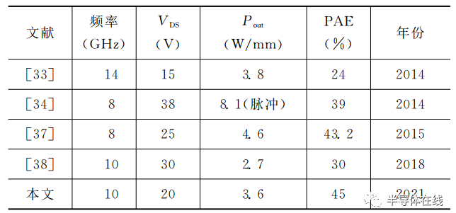 表1 Si基 GaN 射頻器件在 X 波段下功率特性對(duì)比