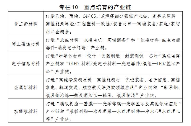 培育自主可控的標(biāo)志性產(chǎn)業(yè)鏈方面,寧波將完善產(chǎn)業(yè)鏈培育機(jī)制,重點(diǎn)加快打造化工新材料、稀土磁性材料標(biāo)志性產(chǎn)業(yè)鏈,培育電子信息材料、金屬新材料、功能膜材料等優(yōu)勢(shì)產(chǎn)業(yè)鏈。電子信息材料重點(diǎn)向新型半導(dǎo)體材料拓展,推進(jìn)江豐陽明工業(yè)研究院產(chǎn)業(yè)基地建設(shè)。