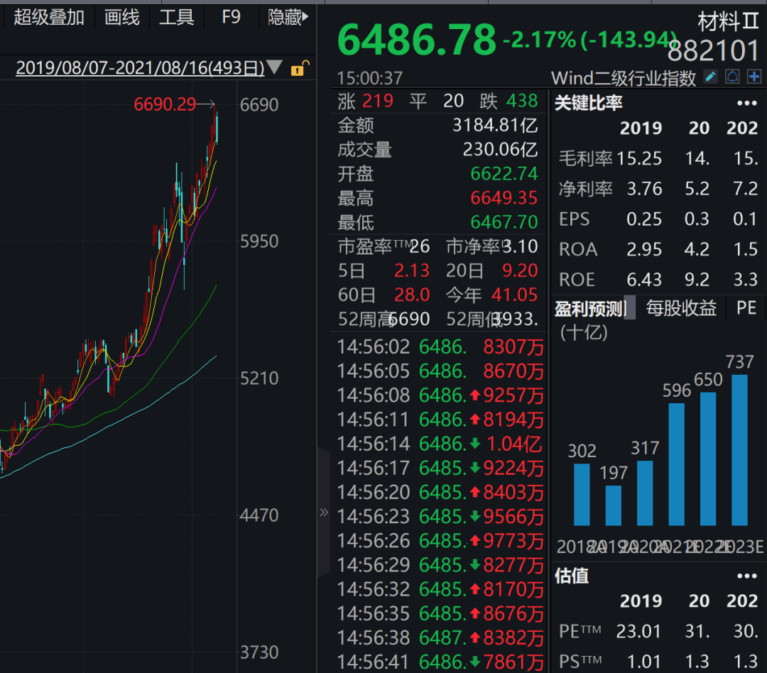 從具體投向來看,7月末,私募在24個萬得二級行業(yè)中平均配置比例最高的行業(yè)為“材料II”,持倉比例達15.56%,并相較于6月末增加3.20個百分點,是私募目前的第一種倉、且增持最大的板塊。