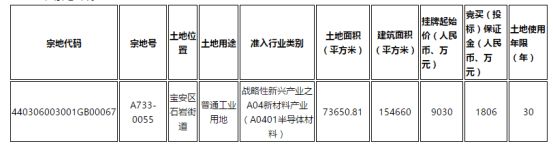 半導(dǎo)體產(chǎn)業(yè)網(wǎng)消息:8月18日,寶安石巖掛牌一宗普通工業(yè)用地,掛牌起始價(jià)9030萬,出讓年限30年,將于9月16日出讓。