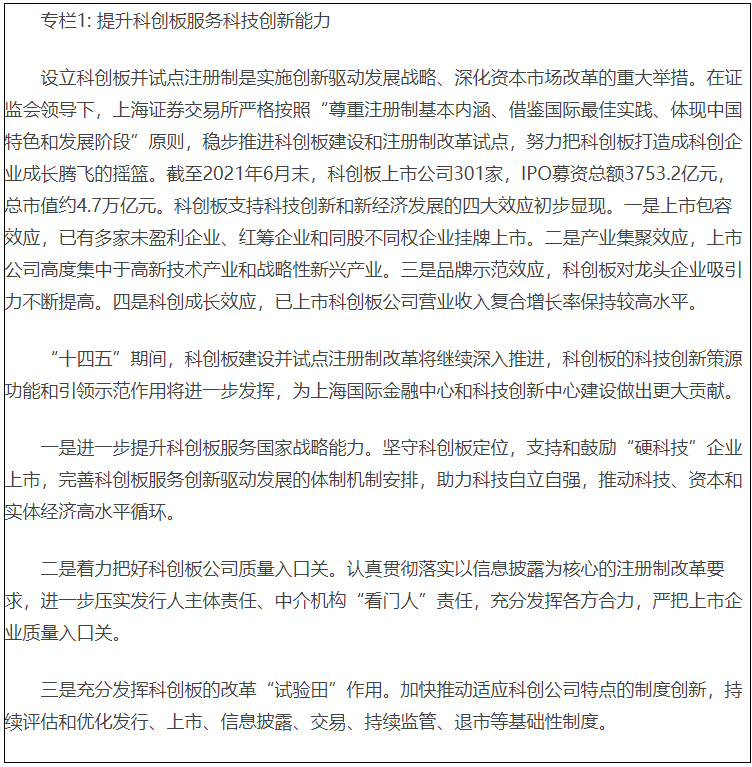 8月24日,上海市人民政府印發(fā)《上海國際金融中心建設(shè)“十四五”規(guī)劃》,其中提出,大力提高直接融資比重,優(yōu)化融資結(jié)構(gòu),加大對(duì)高新技術(shù)企業(yè)的支持力度。深入推進(jìn)“浦江之光”行動(dòng),圍繞企業(yè)成長全生命周期,不斷培育優(yōu)質(zhì)上市資源。充分發(fā)揮科創(chuàng)板資本市場(chǎng)改革“試驗(yàn)田”作用,把握科創(chuàng)板戰(zhàn)略定位,支持集成電路、生物醫(yī)藥、人工智能等產(chǎn)業(yè)借助資本市場(chǎng)加快發(fā)展。