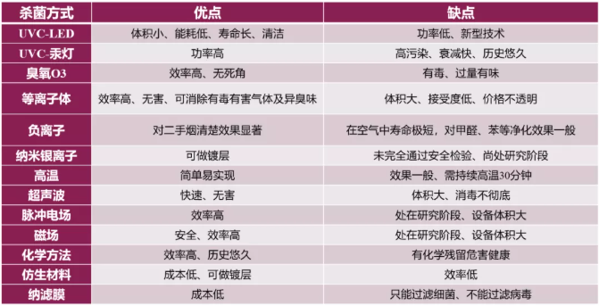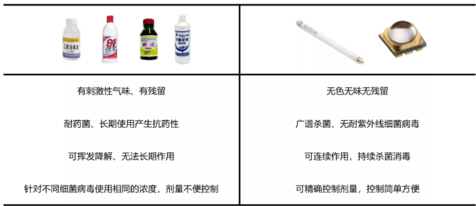 其他的消毒方式,如臭氧、等離子體、負(fù)離子等,均存在不同程度的缺陷,在實(shí)際使用中,深紫外LED作為新型紫外光源,擁有諸多優(yōu)勢。