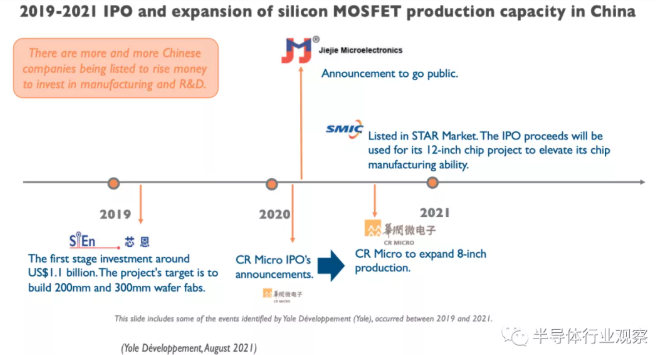 來到中國(guó)玩家方面,事實(shí)上,它們?cè)?MOSFET 市場(chǎng)中并不是很明顯,因?yàn)樗怯筛叨燃夹g(shù)驅(qū)動(dòng)的。然而,在 Yole開來,包括吉林華微、士蘭微電子或華潤(rùn)微電子等公司的產(chǎn)品組合中有相當(dāng)多的 MOSFET 產(chǎn)品......正如 Yole 的硅 MOSFET 報(bào)告所詳述的那樣,中國(guó)占硅 MOSFET 銷售額的 38%。除了不同應(yīng)用對(duì)硅 MOSFET 的需求不斷增長(zhǎng)之外,中國(guó)政府也在推動(dòng)國(guó)內(nèi)制造。