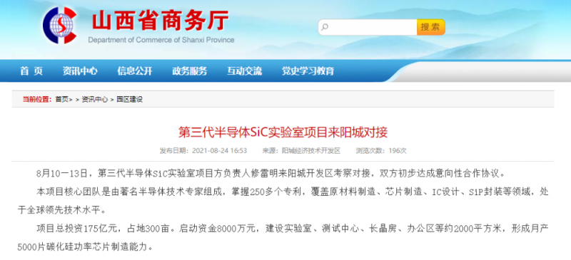 近日,山西省商務(wù)廳發(fā)文指出,第三代半導(dǎo)體SiC實(shí)驗(yàn)室項(xiàng)目方負(fù)責(zé)人修雷明與陽城開發(fā)區(qū)初步達(dá)成了意向性合作協(xié)議。