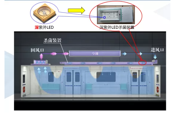2020年,中科潞安半導(dǎo)體技術(shù)研究院與中車集團(tuán)簽署戰(zhàn)略合作協(xié)議,雙方合作探討將在部分高鐵車廂上安裝UVC LED殺菌裝置并進(jìn)行試運行,這將成為國內(nèi)首次將深紫外殺菌應(yīng)用于軌道交通場景。目前,項目已經(jīng)完成了樣品的安裝及調(diào)試。