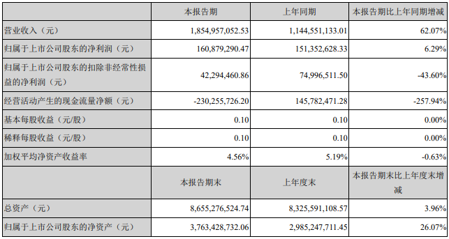 露笑科技發(fā)布半年度業(yè)績(jī)報(bào)告稱,2021年上半年,公司實(shí)現(xiàn)營(yíng)業(yè)收入為18.55億元,同比增長(zhǎng)62.07%,歸屬于上市公司股東的凈利潤(rùn)1.61億元,同比增長(zhǎng)6.29%。