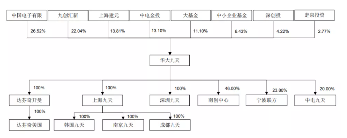 從股權(quán)結(jié)構(gòu)來看,華大九天共有8大核心股東,分別為中國電子有限、九創(chuàng)匯新、上海建元、中電金投、大基金、中小企業(yè)基金、深創(chuàng)投以及江蘇疌泉元禾璞華股權(quán)投資合伙企業(yè)(以下簡稱:元禾璞華),其持股比例分別為26.52%、22.04%、13.81%、13.10%、11.10%、6.43%、4.22%、2.77%。